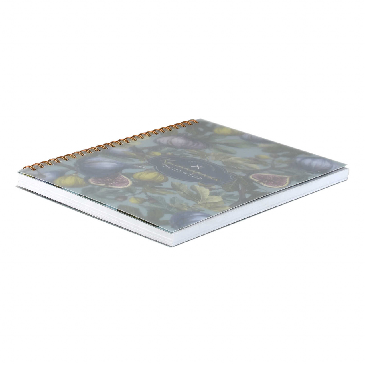 Книга для записи кулинарных рецептов ИНЖИР /А5, 60 л. обложка - мелованный картон 190 г/м², пластик прозрачный, вн.блок - белый офсет, 120 г/м², гребень по длинной стороне,