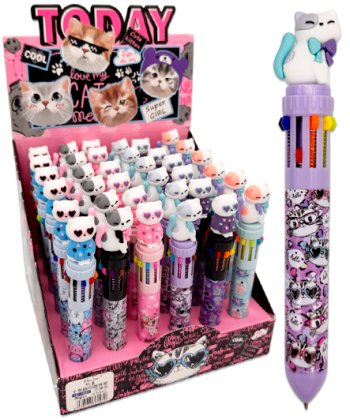 Ручка автоматическая 10-ти цветная "Котик" корпус с рисунком, фигурка, карт.бокс