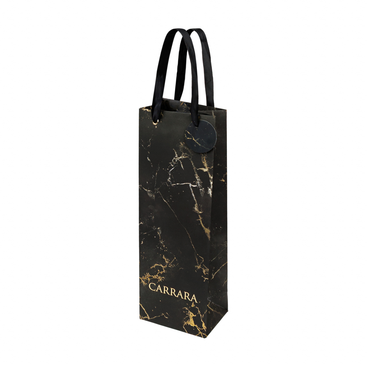 ПАКЕТ ПОДАРОЧНЫЙ ПОД БУТЫЛКУ PREMIUM "CARRARA.BLACK", 12.3 x 36 x 9 см
