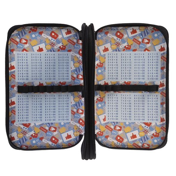 Каркасный пенал на молнии с двумя отделениями. Выполнен из высококачественного картона, дополненного матовой ламинацией и 3D лаком. Внутренняя часть пенала содержит таблицу умножения. Индивидуальная упаковка в термопленку. Размер 190х110 мм.