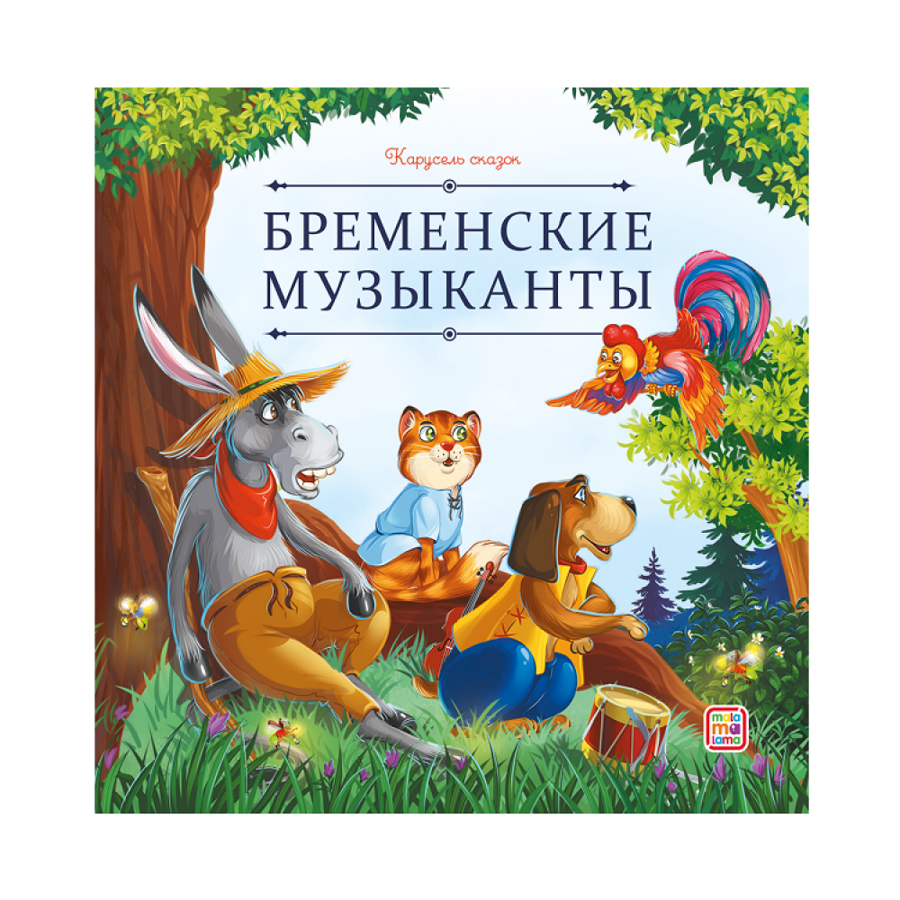 Книжка "Карусель сказок.Бременские музыканты" 12 стр., обл. картон, матов.ламин.. выб.лак, 20х20 см.