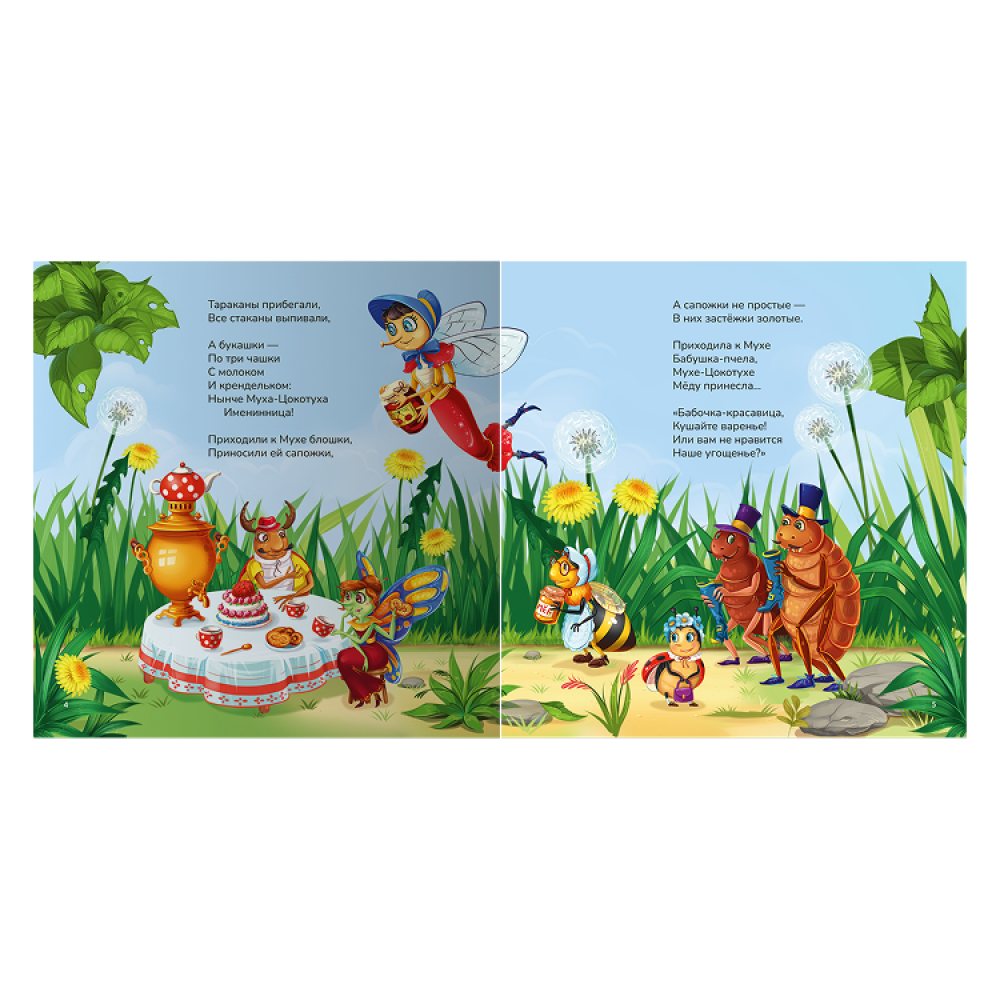 Книжка "Карусель сказок.Муха-Цокотуха" 12 стр., обл. картон, матов.ламин.. выб.лак, 20х20 см.