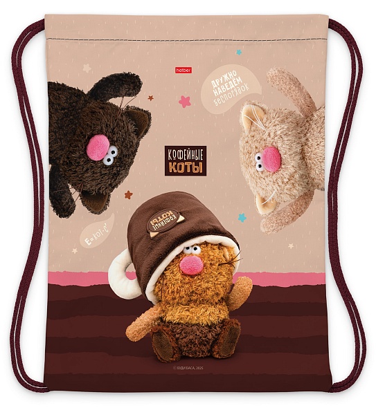 Мешок для обуви ХАТБЕР "Кофейные коты" 1 отд, 33х42см., индив.упак.