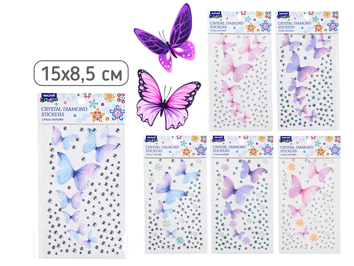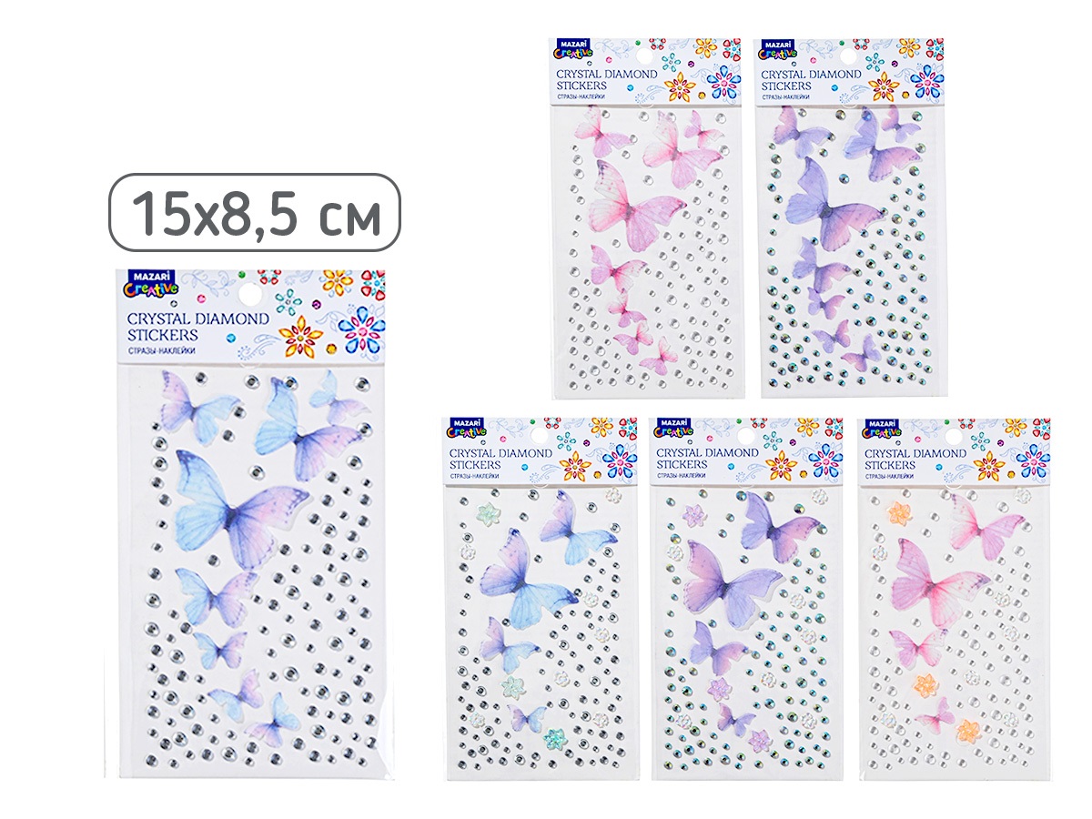 Наклейки Mazari "Ассорти" стразы, пластик, 15х8,5 см., 6в, европодвес