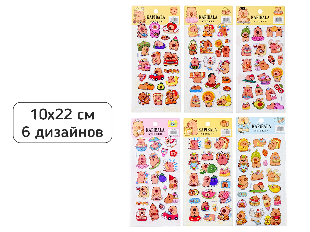 Наклейки декоративные КАПИБАРА, 6 дизайнов