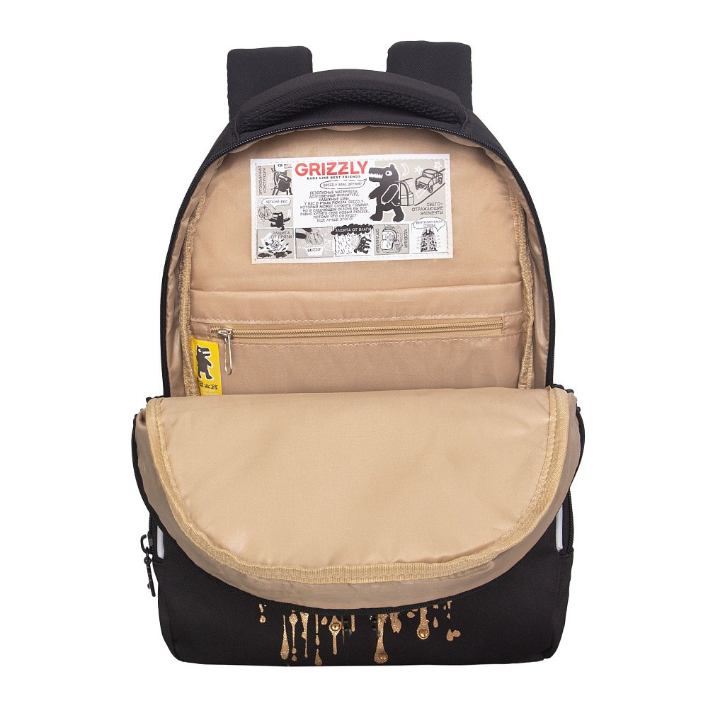Рюкзак школьный Grizzly RG-660-6 черный, 2 отд., карманы, анат.спинка, свет.элем, 27х40х20