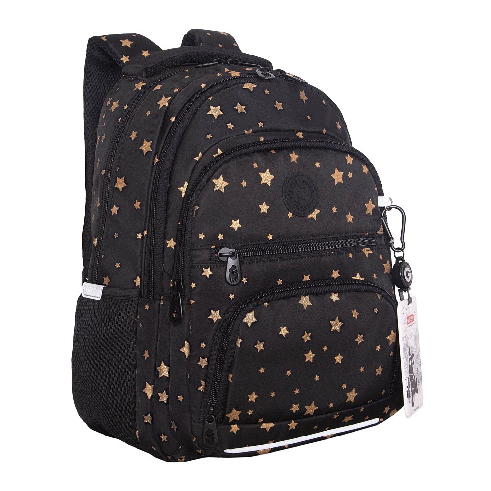 Рюкзак школьный Grizzly RG-662-1 звезды, 3отд, карманы, анат.спинка, картхолдер, свет.элем, 30х39х20