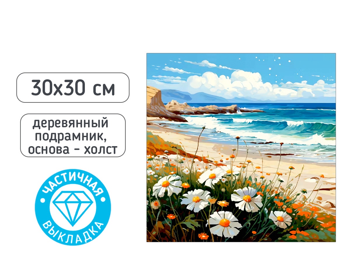 Алмазная мозаика МОРЕ, деревянный подрамник, холст 30X30 см, частичная выкладка, термоусадочная плёнка