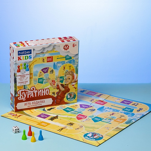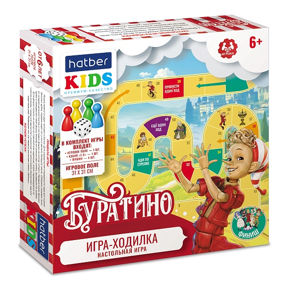 Игра настольная ХАТБЕР А3 "Буратино" с кубиком и фишками, ходилка пазл, 310х310мм, карт.кор (6+)