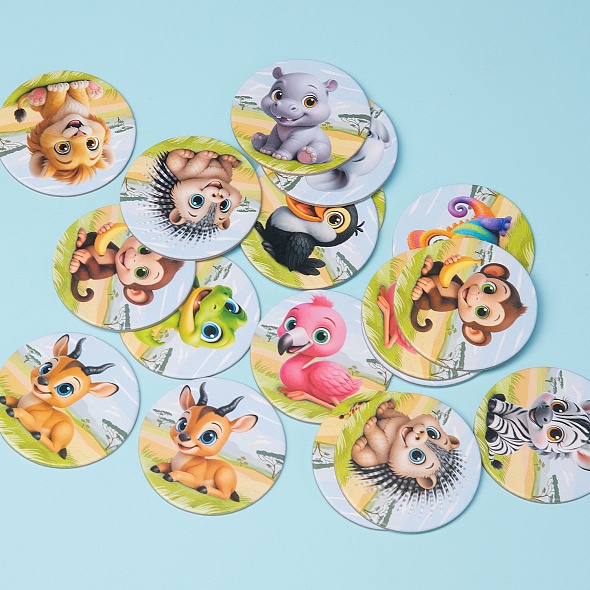 ИГРА для детей настольно-печатная МЕМО круглые 24 карточки-Милые зверушки- в Смарт-упаковке
