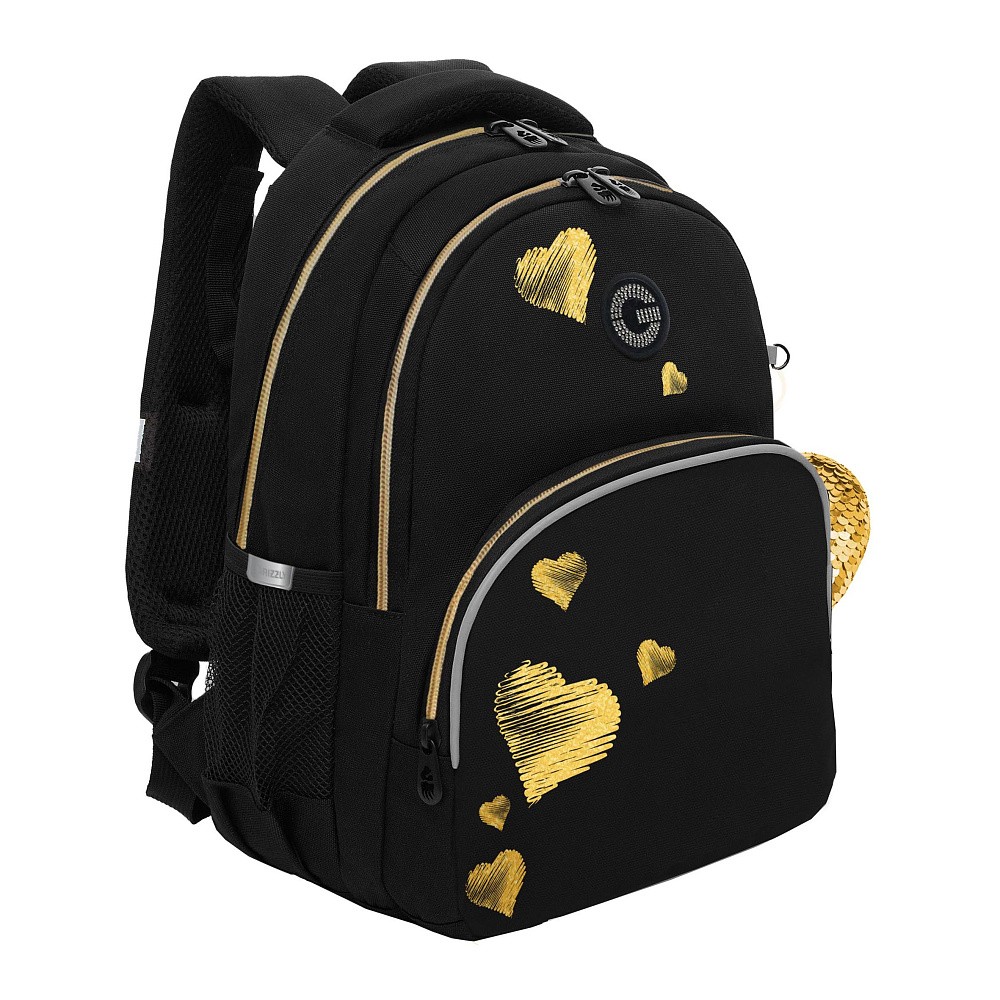 Рюкзак школьный Grizzly RG-660-2 черный-золотой, 2отд, карманы,анат.спинка,св.эл, подвеска, 27х40х20