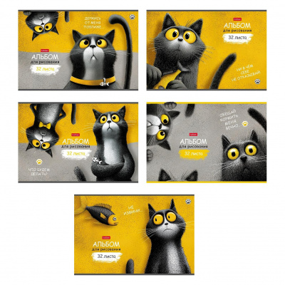 АЛЬБОМ для рисования 40л А4ф на скобе Обл. мел.картон 5 диз.в блоке серия -ЖЖ-МЯУ-