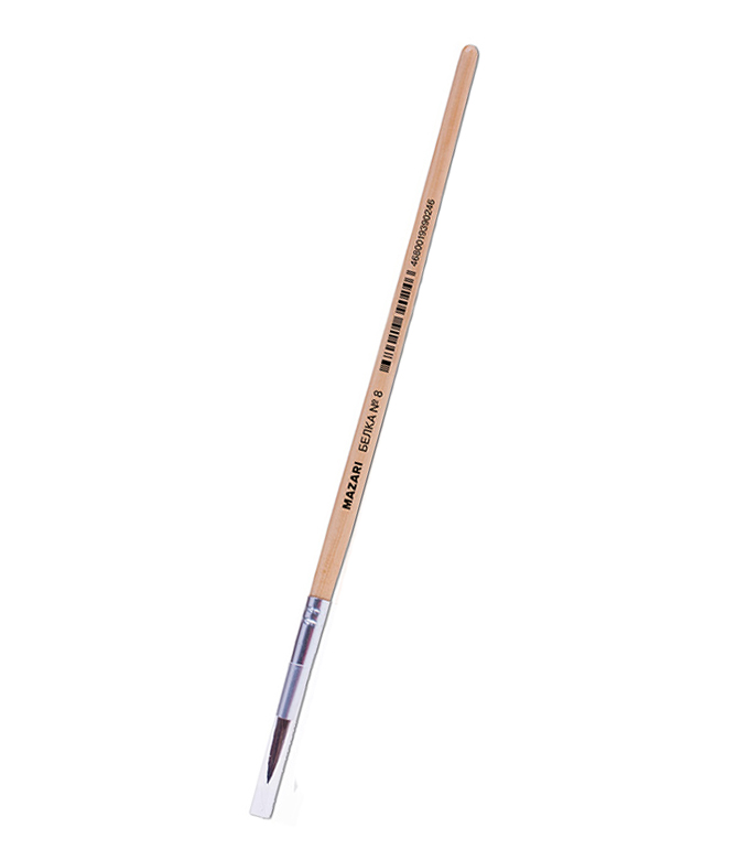 Кисть Mazari белка №8 художественная, круглая, обойма обжимная, ручка деревянная