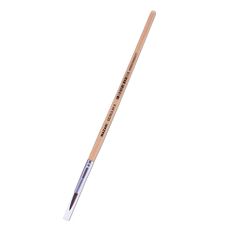 Кисть Mazari белка №9 художественная, круглая, обойма обжимная, ручка деревянная