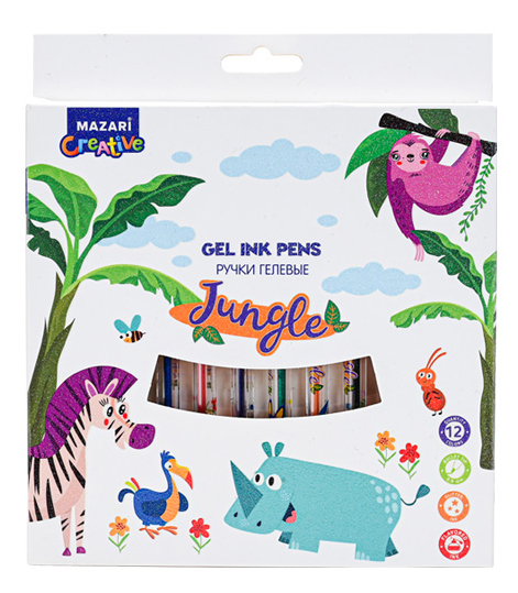 Набор гелевых ручек Mazari 12цв. "Jungle" блестки, ароматиз., 0,9мм., карт. упак., европодвес