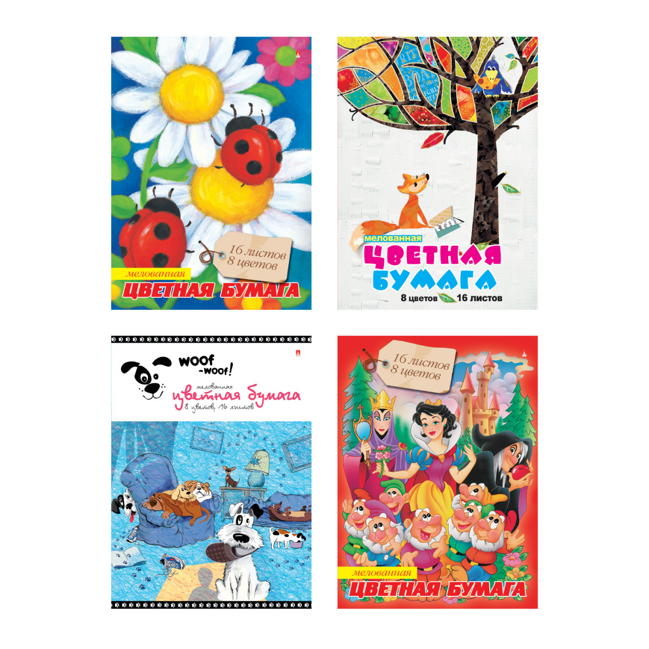 11-416-177 НАБОР ЦВЕТНОЙ БУМАГИ НА СКРЕПКЕ A4, 16Л. 8ЦВ., "МУЛЬТИКИ" ОБЛОЖКА МЕЛОВ. БЛОК МЕЛОВ. 4 ВИДА