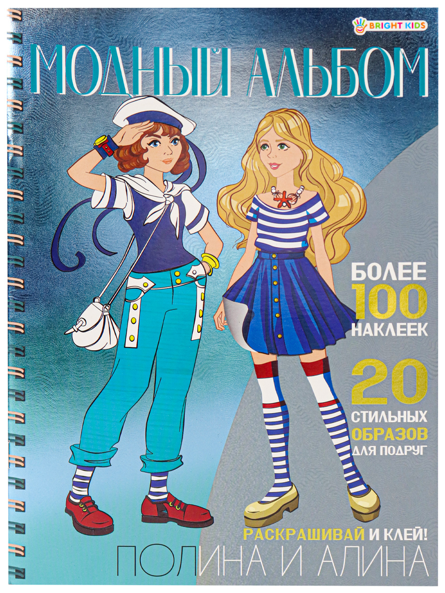 Альбом наклеек А4 Проф-Пресс "Модный альбом.Полина и Алина" 4 листа, 4 листа наклеек, обл.мел.карт.
