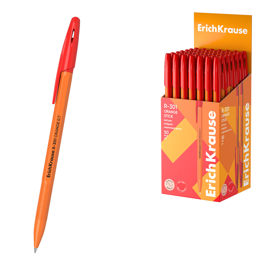 Ручка шариковая Erich Krause R-301 Orange Stick красная, 0,7мм.