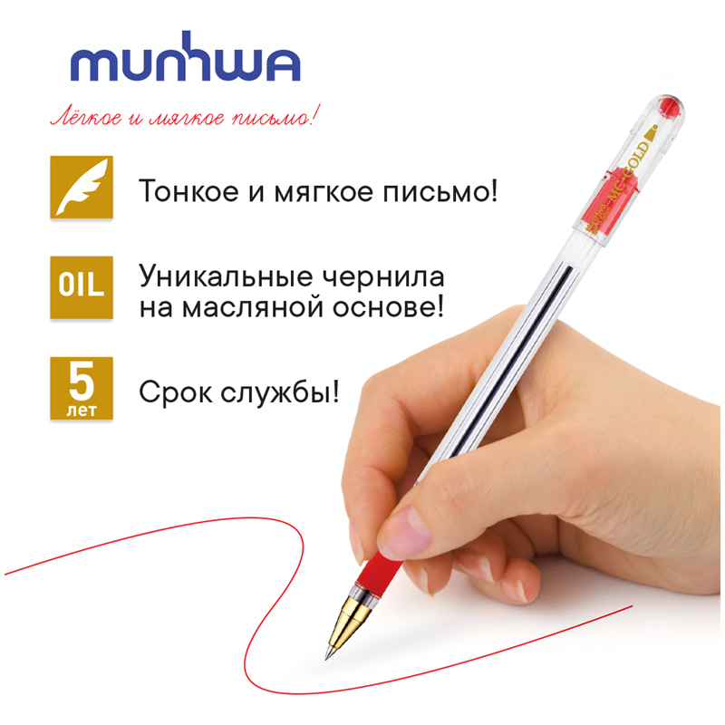 Ручка шариковая "MC Gold" красная, грип, 0,5мм.