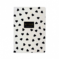 Тетрадь А5 40л. Bruno Visconti "Black and White.Сердечки" клетка,мат.ламин.soft touch,фольга,ск.угл,