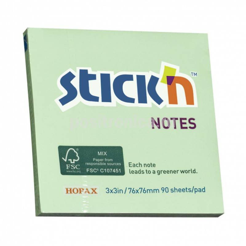 Бумага д/зам. самокл. HOPAX 76*76 100л., пастель зеленый,