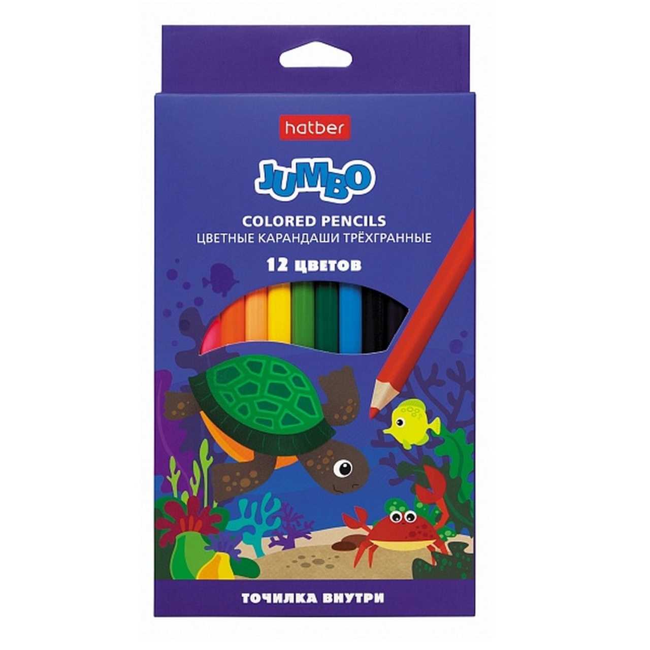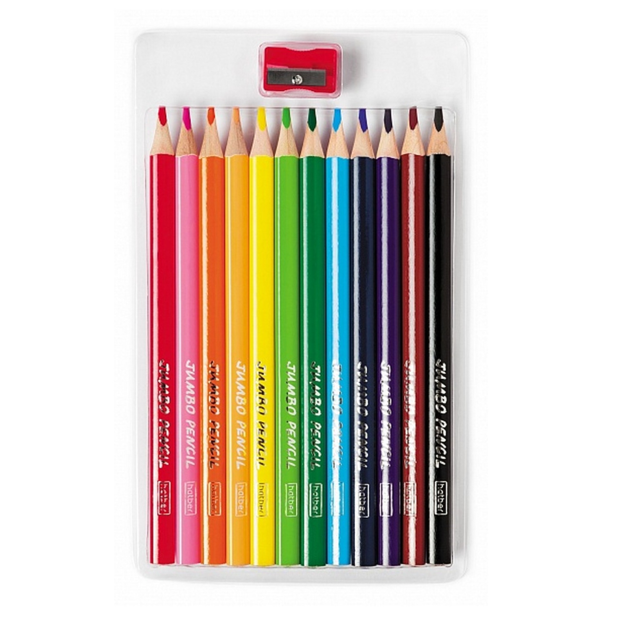 Карандаши 12-ти цв. ХАТБЕР "JUMBO" утолщ., трехгр., заточен., с точилкой, карт. упак., европодвес