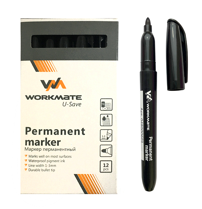 Маркер Workmate P-6 черный, перманентный, пулевидный наконечник, 1мм (линия 1-3мм)
