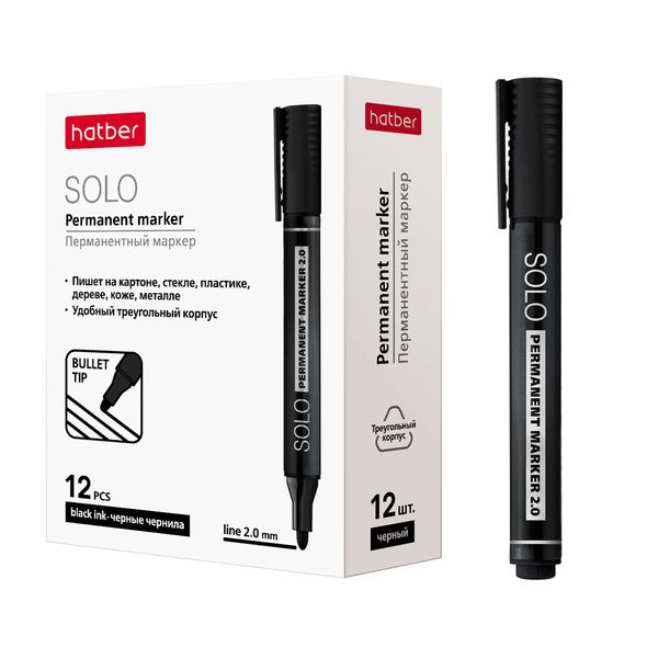 Маркер ХАТБЕР "Solo" перманентный, черный, закруг.пишущ.узел 2мм., карт.коробка