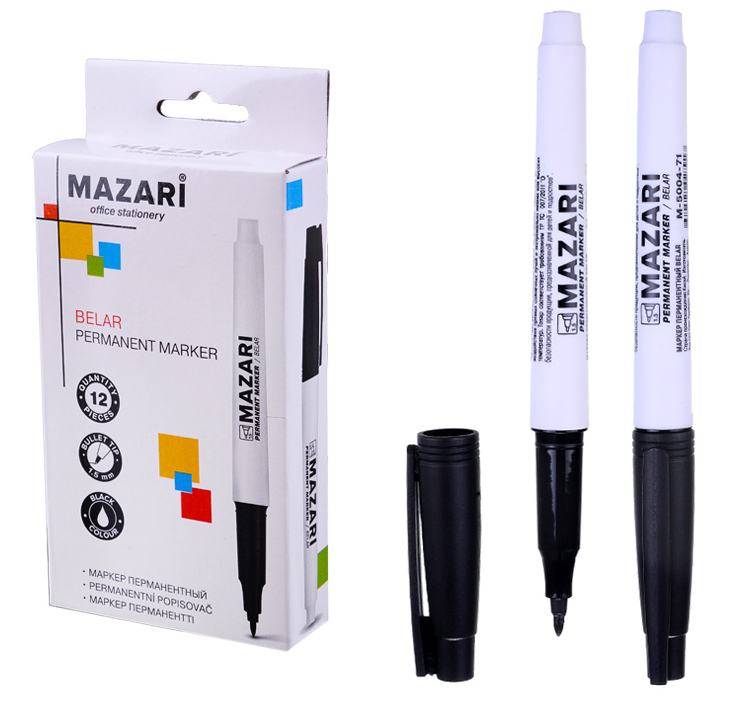 Маркер Mazari "Belar" черный, перманентный, остроконечный пиш.узел 1.5 мм.