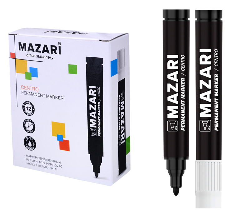 Маркер Mazari "Centro" черный, перманентный, пулевидный пиш.узел 2 мм.