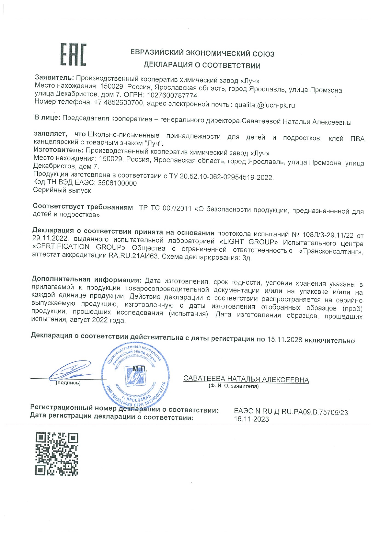 Клей ПВА-М ЛУЧ 65гр, навинч. крышка ,желтый флакон