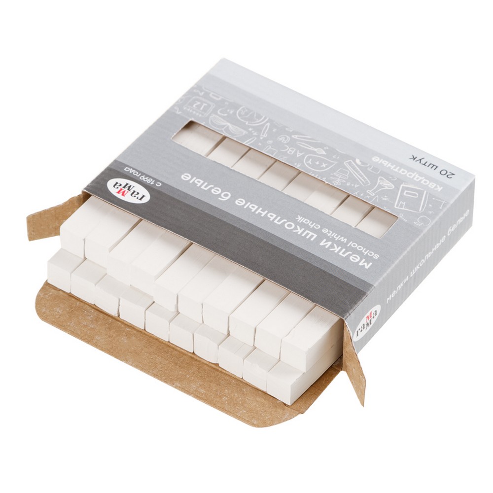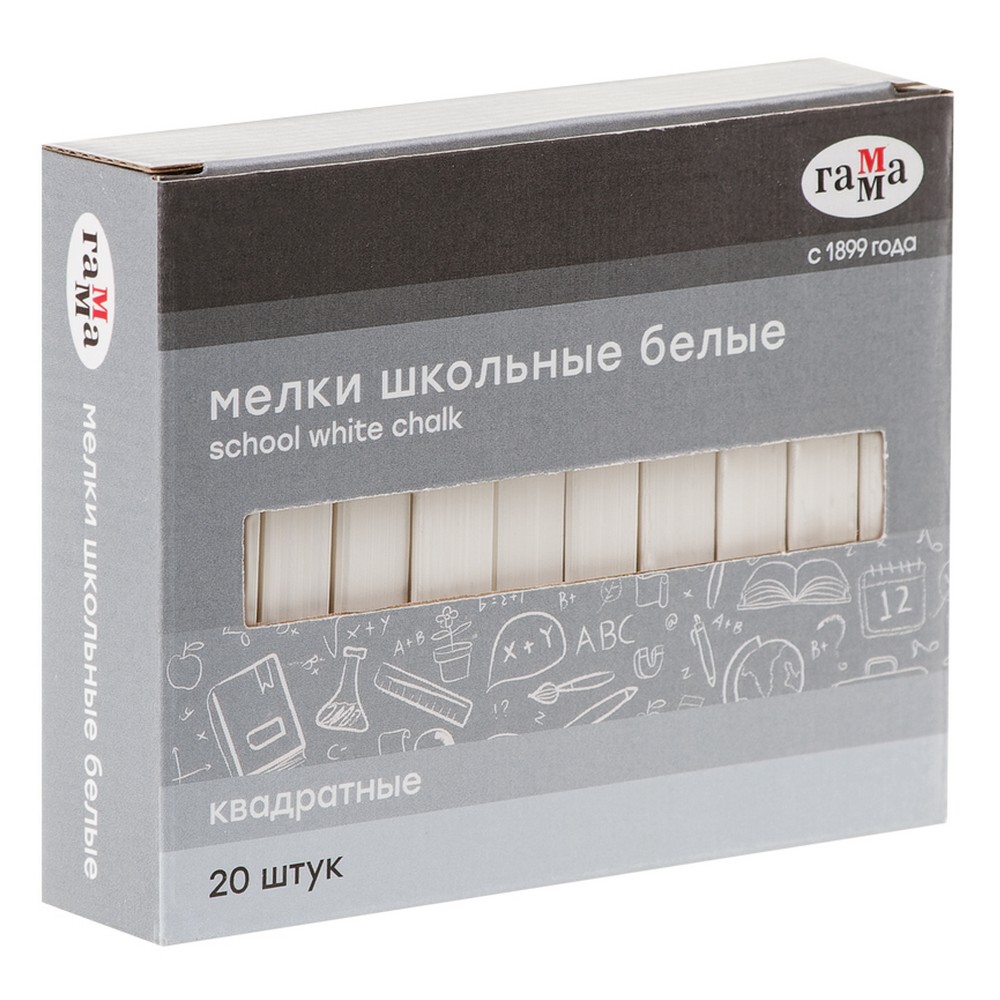 Мелки школьные Гамма, белые, 20шт., мягкие, квадратные, картонная коробка