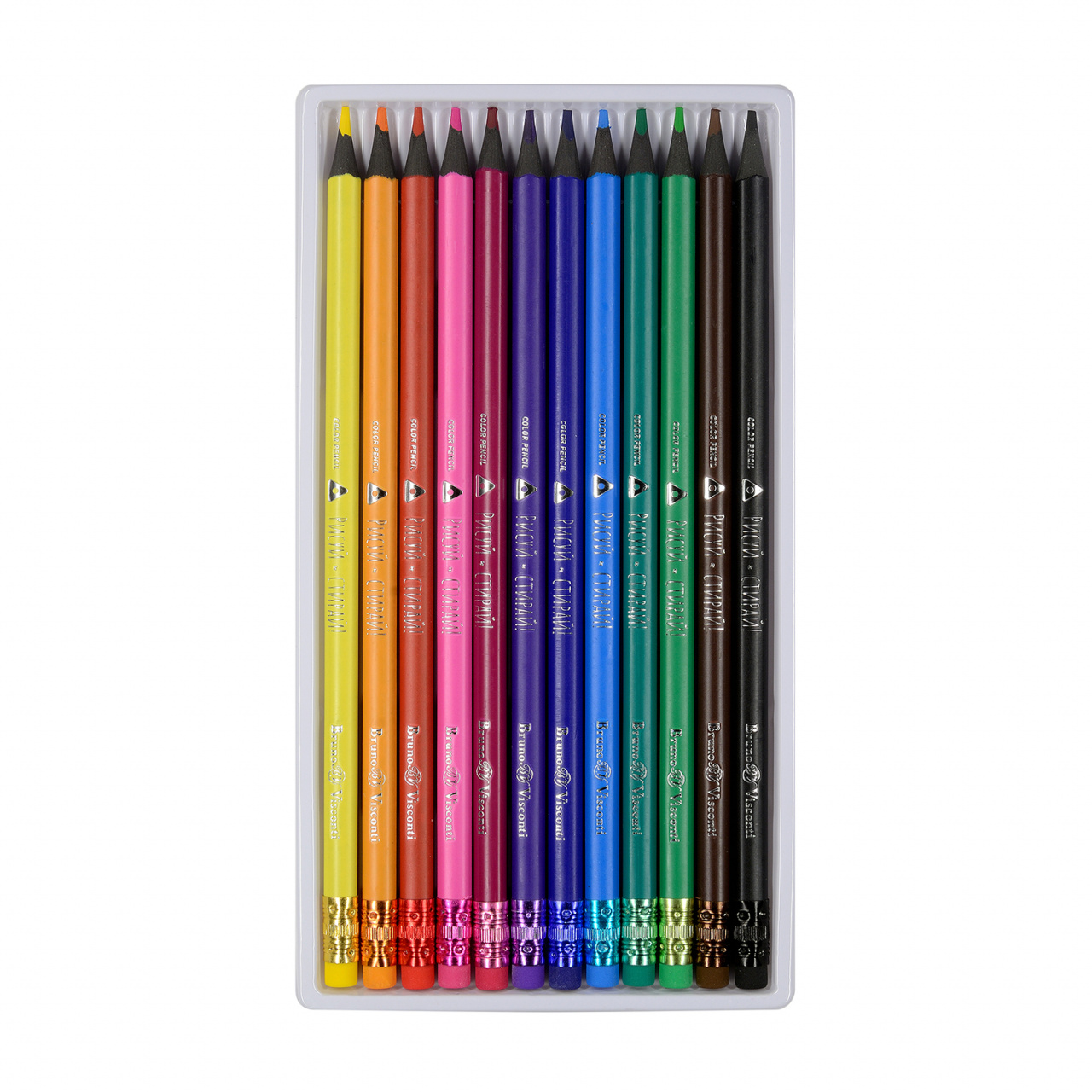 Карандаши 12 цв. Bruno Visconti "Рисуй и стирай" пластиковые, трехгран., с ластиком, точилка, 4в.