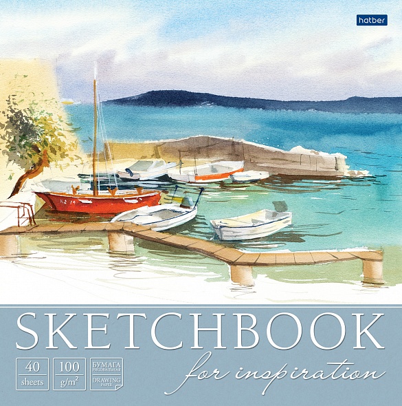 Скетчбук А4 ХАТБЕР на склейке "Premium.Тихая бухта" 40л., 100г/кв.м, жесткая подложка