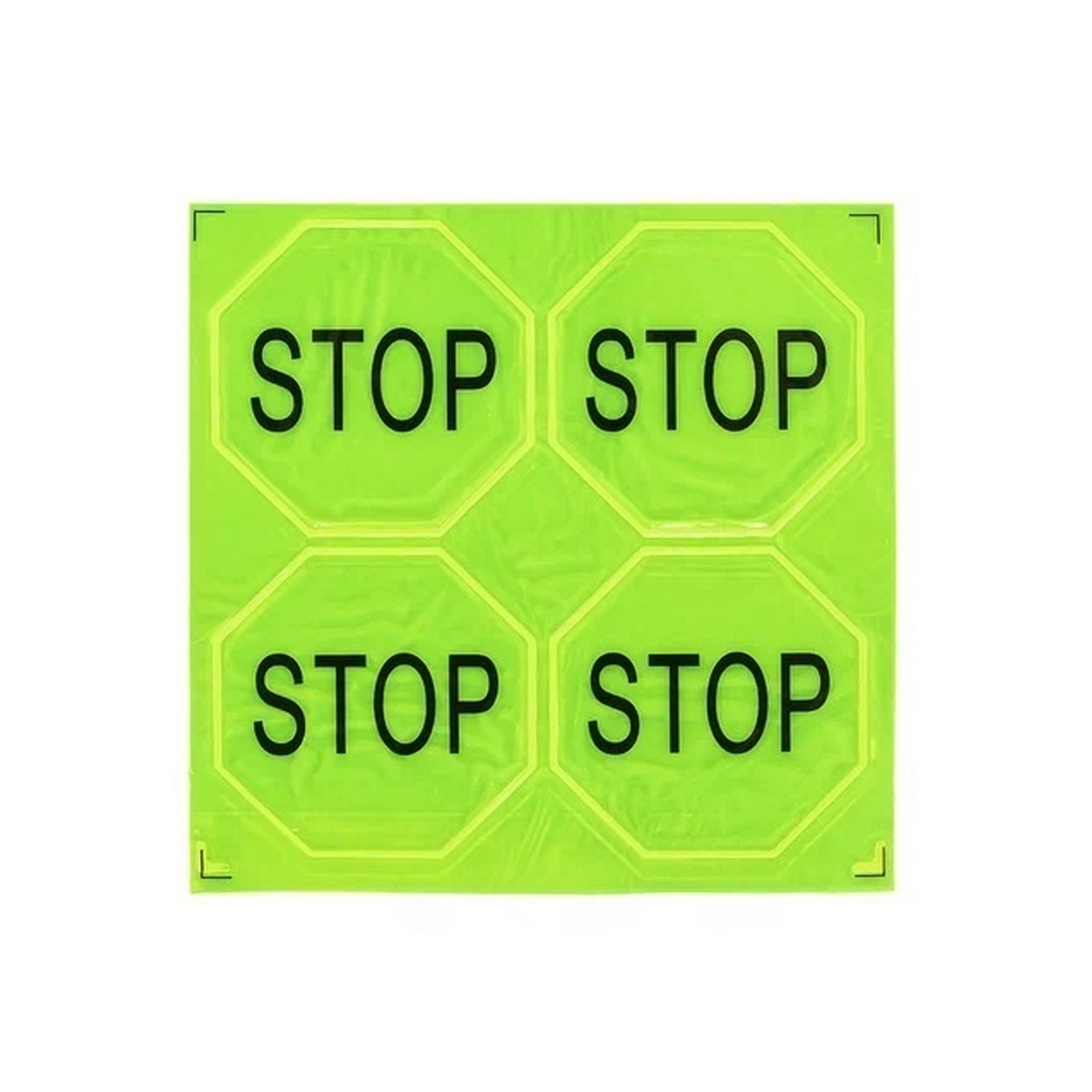 Фликеры: набор светоотражающих наклеек "STOP" 4 штуки. Отличный способ обезопасить себя и детей на дороге в темное время суток или в условиях плохой видимости. В п/э упаковке /12*12см/.