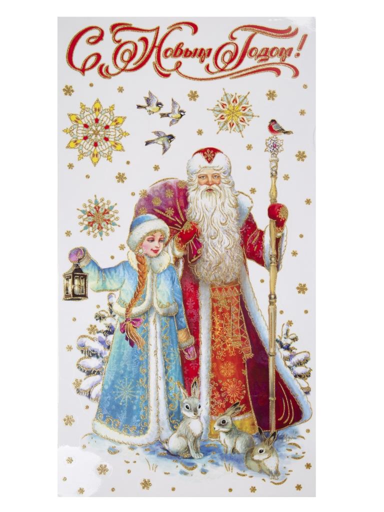 Панно новогоднее оконное "Дед Мороз и Снегурочка" пвх пленка, 32х59,5 см.