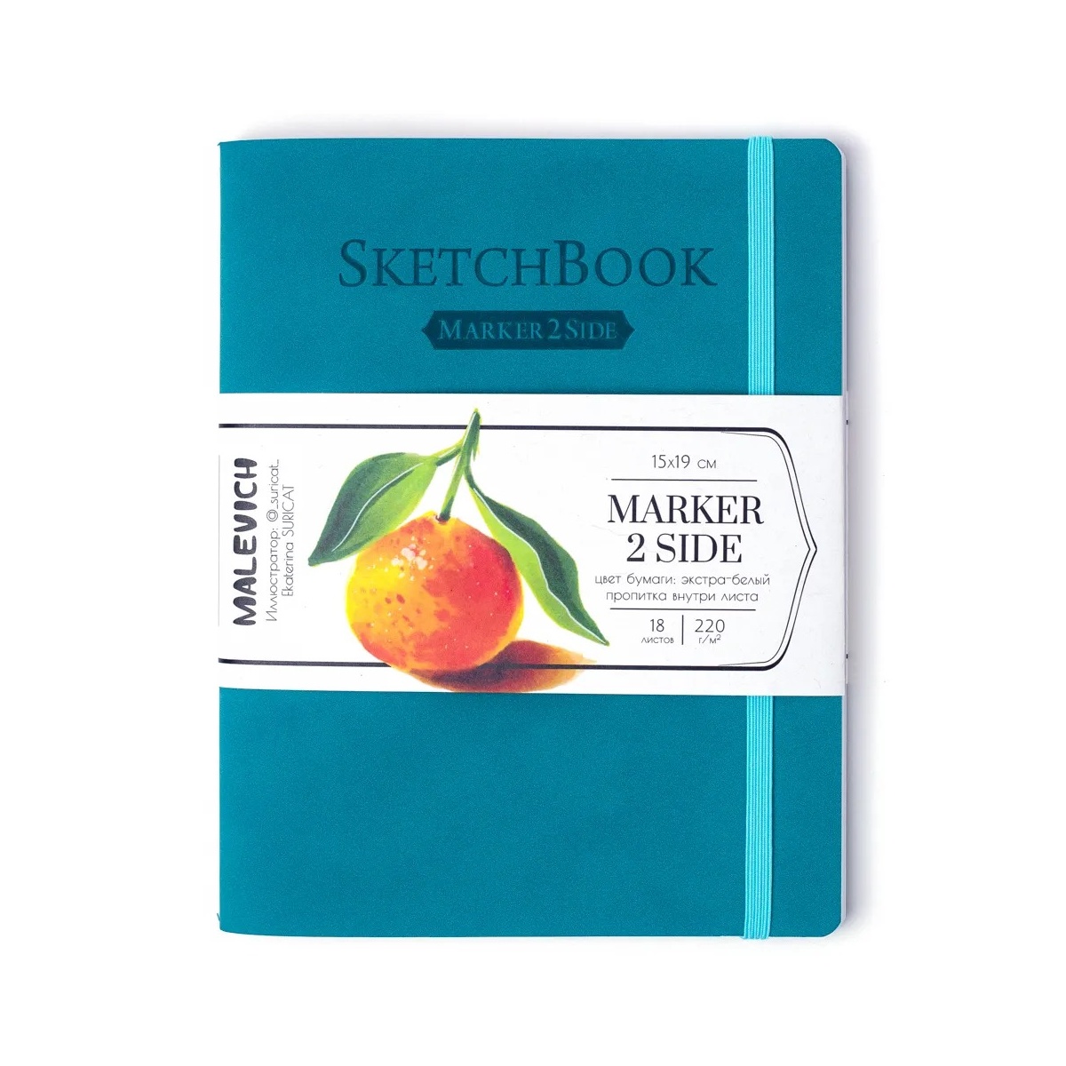 Скетчбук 15х19 Малевичъ "2Side Markers.Бирюза" для маркеров, 18л., 100% хлопок, 220 г/м, на резинке
